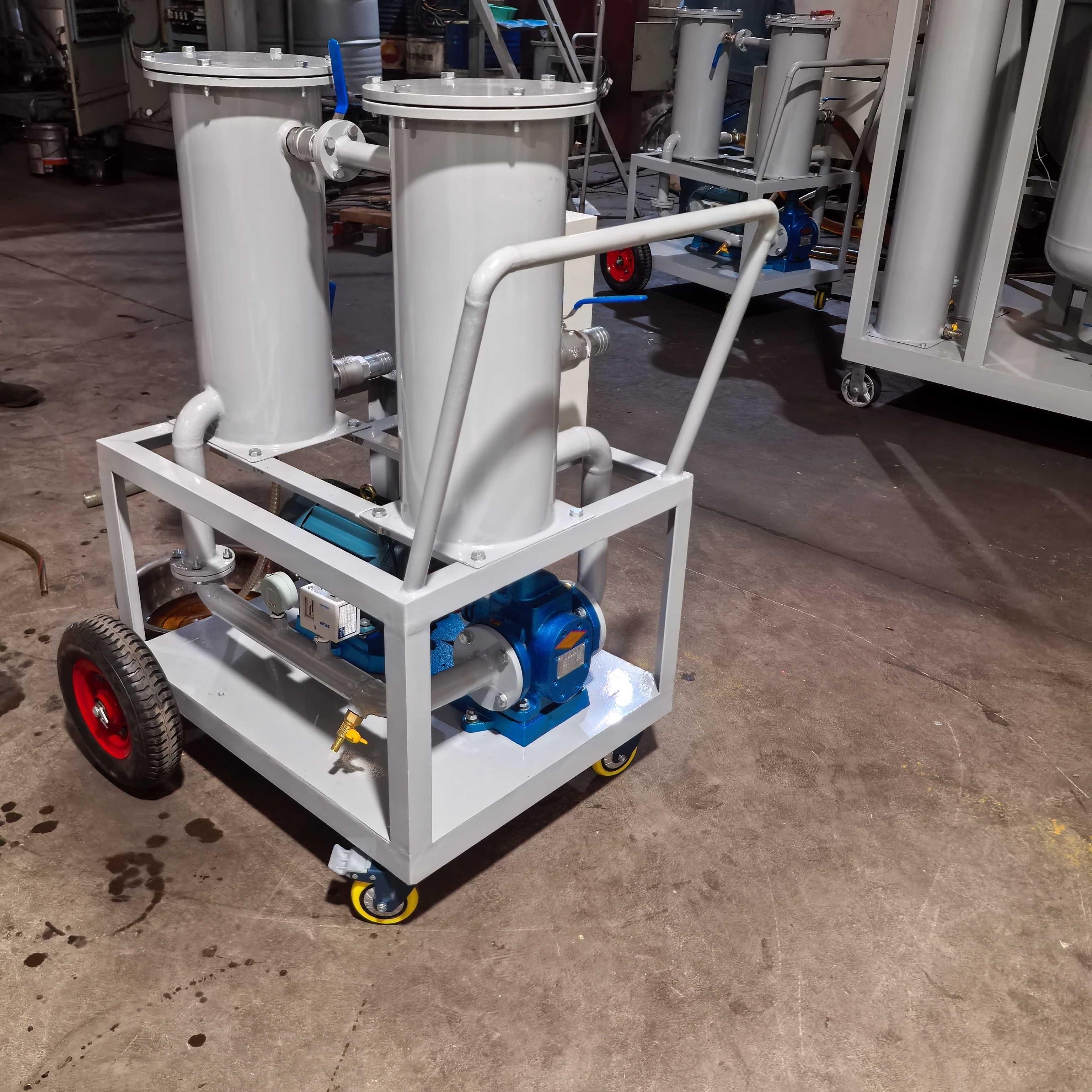 润滑油轻便式二级过滤加油机:特殊二级过滤设计,精密滤油机轻便灵活,移动方便,流量大、噪声低,操作简单,使用方便。油泵根据客户要求更换了高粘度油泵,使用范围更广,抽有效果更好。